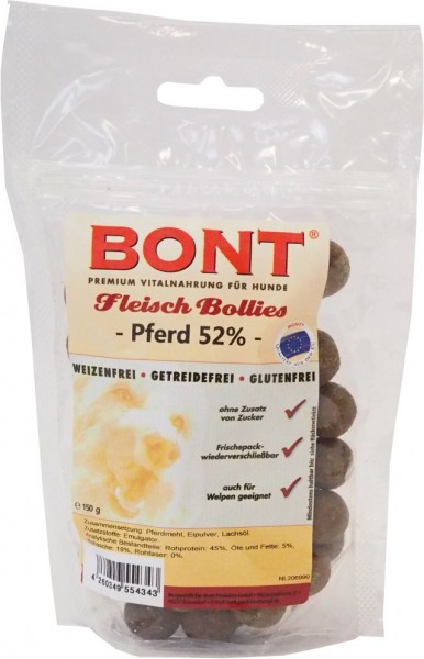 Die Fleisch Bollies aus 52% Pferd sind eine herrliche Belohnung für deinen Hund. Die kleinen bällchenartigen Snacks kannst du praktisch unterwegs, beim Training oder als leckeres Zwischendurch nutzen!