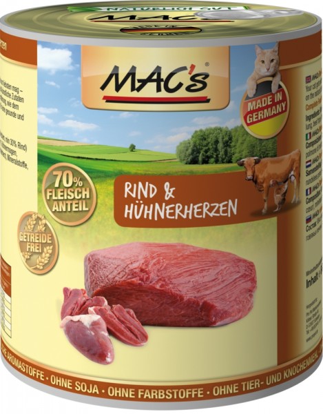 Produktinformationen "MACs CAT - Rind & Hühnerherzen 800g"