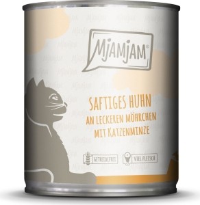 MjAMjAM - leckere Mahlzeit mit saftigem Hühnchenfleisch, serviert an knackigen Möhrchen, verfeinert mit einem Hauch von Katzenminze.