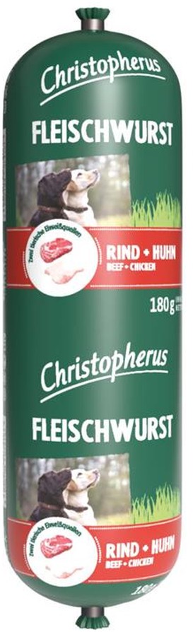 Unsere Christopherus getreidefreien Fleischwürste sind schnittfest, perfekt portionierbar und werden unter Verwendung von frischem Fleisch in Kombination mit hochwertigen Rohstoffen hergestellt. Die schonende Zubereitung macht die Produkte so wohlschmeckend und gesund. Auf künstliche Farb-, Aroma- und Konservierungsstoffe haben wir verzichtet. Stattdessen sorgen ausgewählte Fleischsorten wie Lamm, Huhn, Ente und Rind für einen einzigartigen Geschmack. Ideal als Alleinfuttermittel oder als Belohnung für zwischendurch.