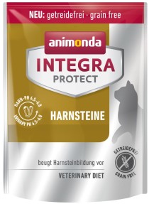 NTEGRA PROTECT HARNSTEINE Katzennahrung wurde speziell für Katzen entwickelt, um der Bildung von Struvit- und Calciumoxalatsteinen vorzubeugen. Ausbalancierte Mineralstoffgehalte sorgen für einen pH-Wert des Katzenurins von 6,6-6,7. Gleichzeitig enthält diese Diätnahrung kein Getreide und ist somit für Katzen mit einer Getreideunverträglichkeit geeignet. INTEGRA PROTECT Diätfutter schützt, hilft und schmeckt.