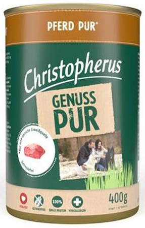 Christopherus Pferd PUR wird ausschließlich mit frischem Fleisch und Innereien vom Pferd hergestellt. Durch das ausgewählte Singleprotein ist Christopherus PUR u.a. auch bei Futtermittelallergien oder Nahrungsunverträglichkeiten geeignet. Die ausgewählten Rohstoffe und die schonende Zubereitung machen Christopherus PUR zu einer leicht verdaulichen, wohlschmeckenden und gesunden Mahlzeit. Hergestellt ohne Getreide, pflanzliche Eiweißextrakte (Soja) sowie Farb-, Aroma- und Konservierungsstoffe. Für eine abwechslungsreiche und vollwertige Ernährung Ihres Hundes empfehlen wir, Christopherus PUR mit unseren Obst- und Gemüse-Mischungen zu kombinieren.